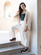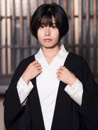 伝統的な着物の構造を活かしながらも、現代のファッションに合うシルエットへと落とし込むため、何度も試作を繰り返し完成したデザインです。肩のラインや袖の広がり、前開きのバランスに至るまで、すべてが計算された美しいフォルム。これにより、羽織るだけで洗練された印象を与える一着に仕上がりました。