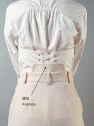 袴についている腰板のパーツをアクセントとして取り入れました。 柔らかい素材でできているので、腰に直接当たっても痛くない仕様です。
