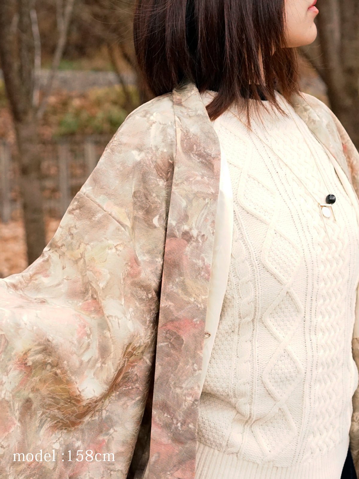 着物の上に羽織ることは勿論、カーディガンやジャケットの様な普段使いにもおすすめです。